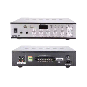 Amply có công suất đầu ra 80W, đủ để phối ghép với 4–10 loa âm trần 6W–10W hoặc 2–4 loa hộp 20W–30W cho không gian từ 30–100m².