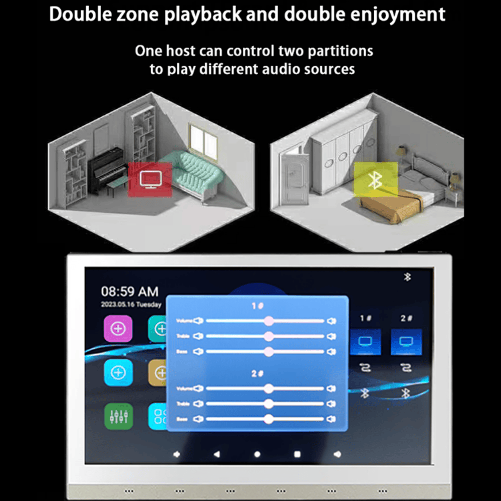 Amply Android gắn tường Z100-11 – Màn hình 10.1 inch, điều khiển 2 vùng âm thanh, Bluetooth 5.0, Wi-Fi kép