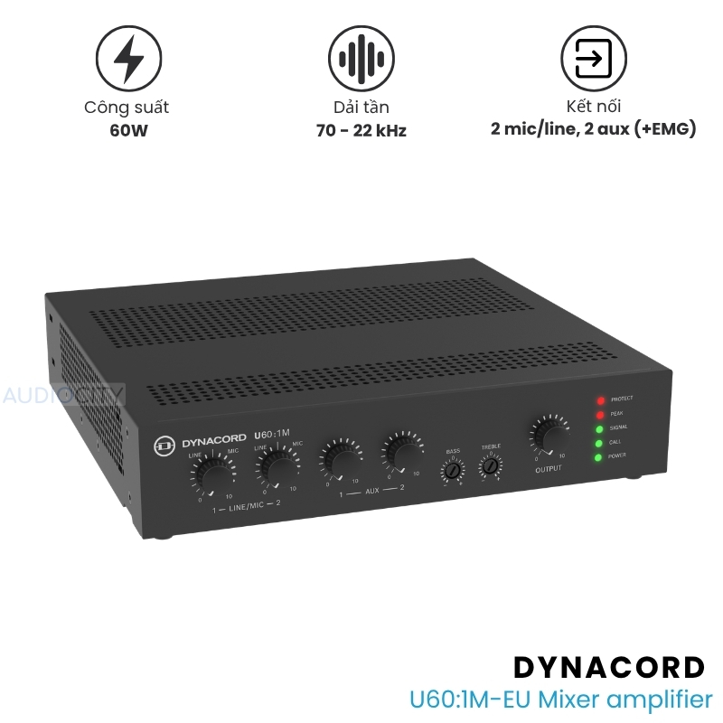 Mua Amply Dynacord U60:1M-EU chính hãng. Mixer Amplifier 60W, hỗ trợ 70V/100V/4 Ohm. Hiệu suất Đức đỉnh cao cho nhà hàng, showroom, văn phòng. Giá tốt nhất.