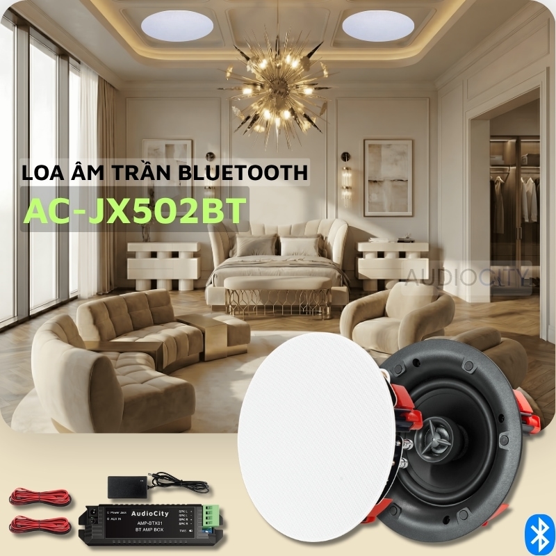 Loa âm trần Bluetooth AC-JX502BT là hệ thống âm thanh không dây thế hệ mới, tái định nghĩa trải nghiệm giải trí tại gia với thiết kế Frameless (tràn viền) cực kỳ tinh tế. Sự kết hợp giữa công nghệ Bluetooth 5.0 ổn định và chất lượng âm thanh 2 đường tiếng sắc nét khiến đây trở thành lựa chọn hàng đầu cho các không gian hiện đại như căn hộ chung cư, biệt thự, Spa và văn phòng cao cấp.
