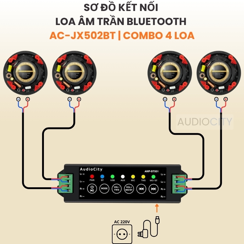 Sơ đồ đấu nối loa âm trần bluetooth AC-JX502BT