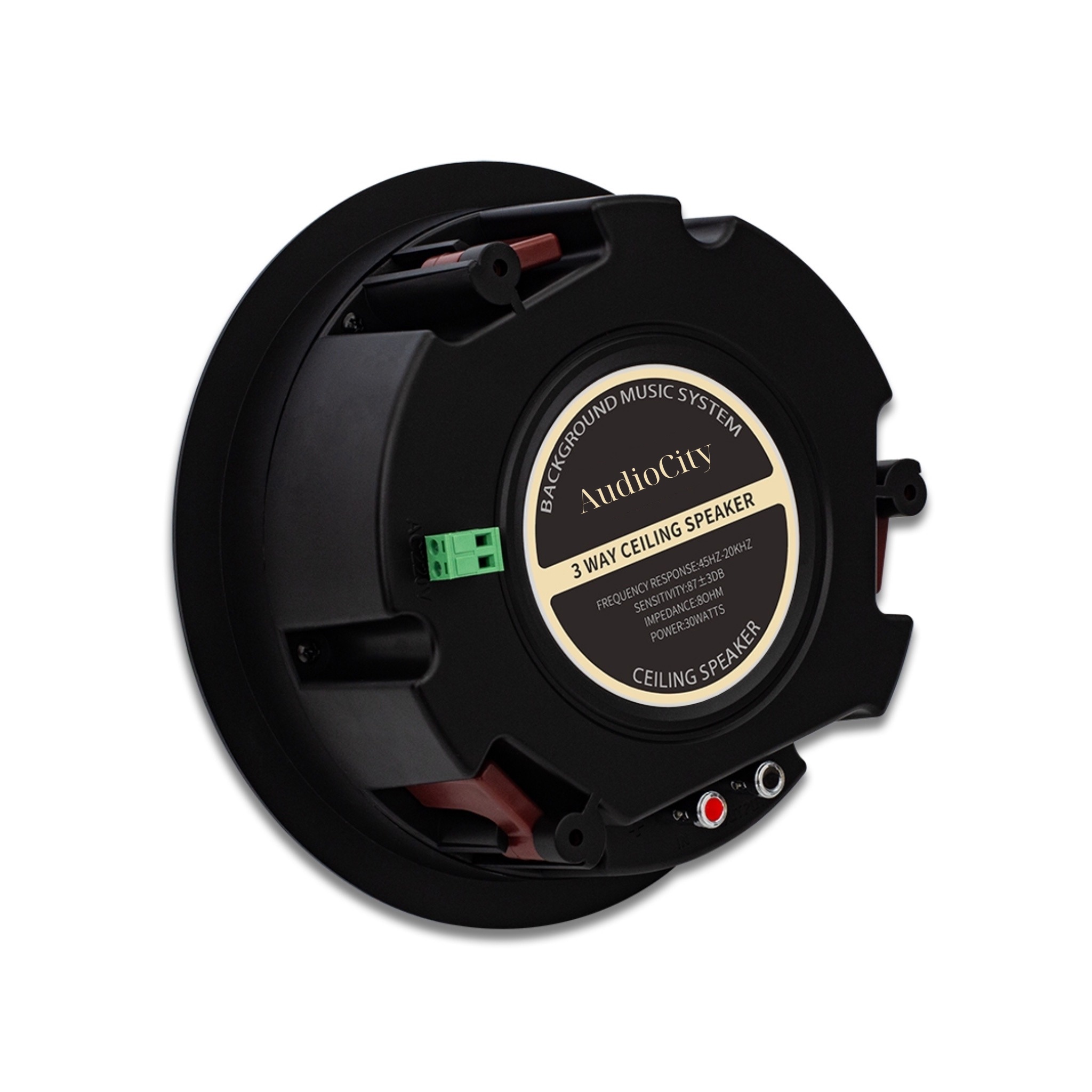 AC-L10BT là loa âm trần Bluetooth tích hợp ampli, loa mid 3″ sợi tre + tweeter PEI 1″, có màng cộng hưởng thụ động, mỏng ~70 mm, cắt lỗ φ185×70 mm, đáp tuyến 45–20 kHz, phù hợp không gian ẩm như bếp, spa.