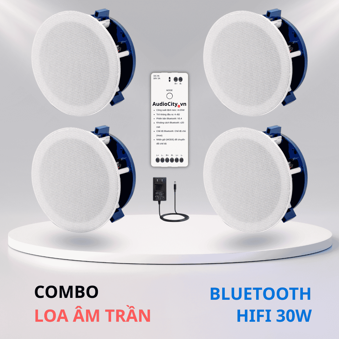Khám phá loa âm trần Bluetooth Kacaudio AC-883BT công suất 30W, âm thanh sống động, lắp đặt dễ dàng. Kết hợp modul ampli Bluetooth DSP Hifi 2x40W hoặc L18 cho trải nghiệm âm nhạc hoàn hảo.