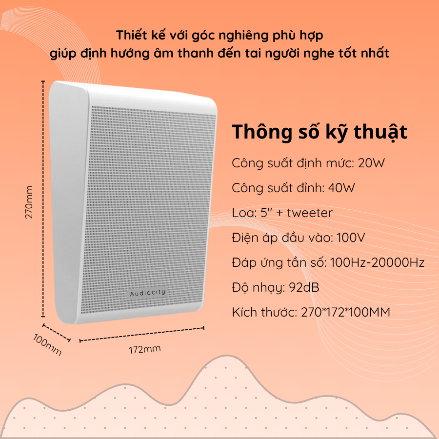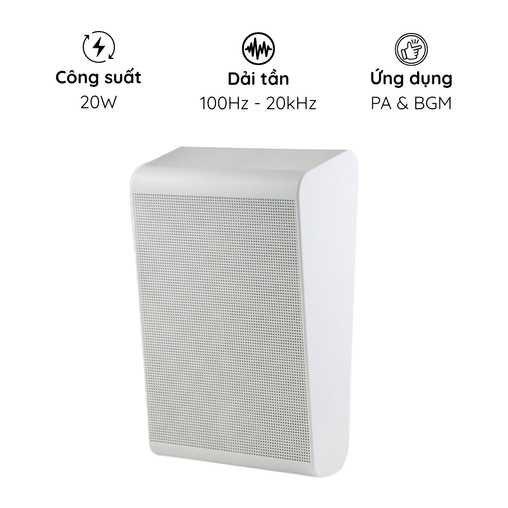 - Công suất 20W – phù hợp cho cả thông báo và phát nhạc nền.