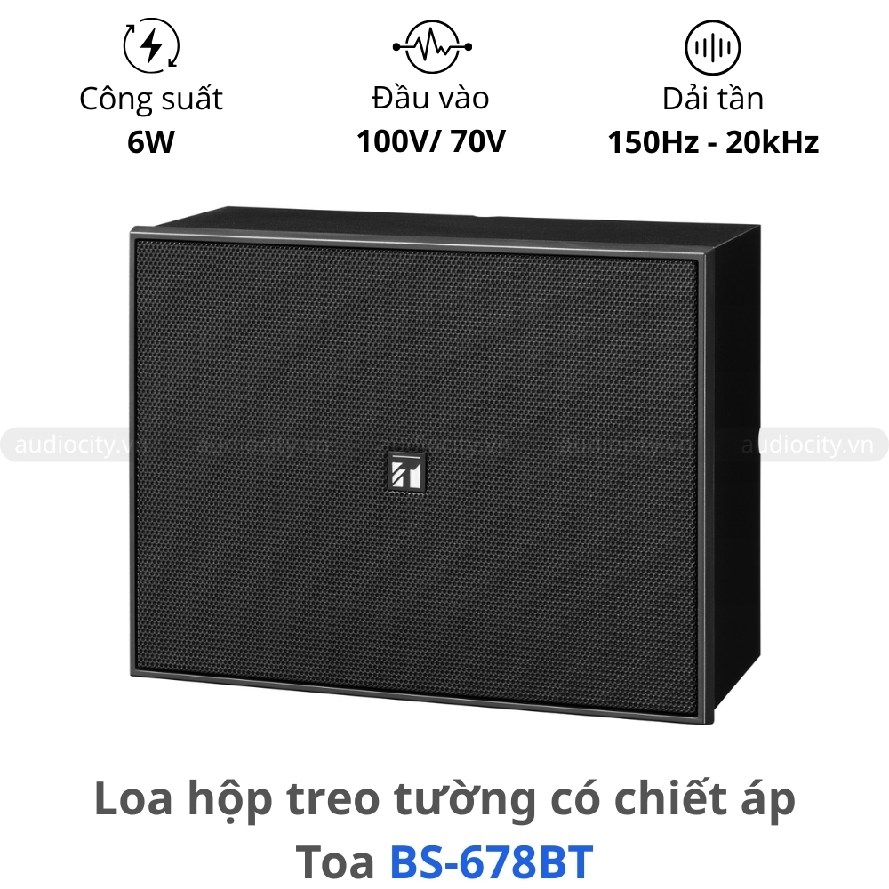 TOA BS-678BT là loa hộp treo tường 6W có chiết áp, cường độ 94 dB, lắp dễ dàng, phù hợp cho hệ thống thông báo và nhạc nền 100V/70V trong văn phòng, trường học.